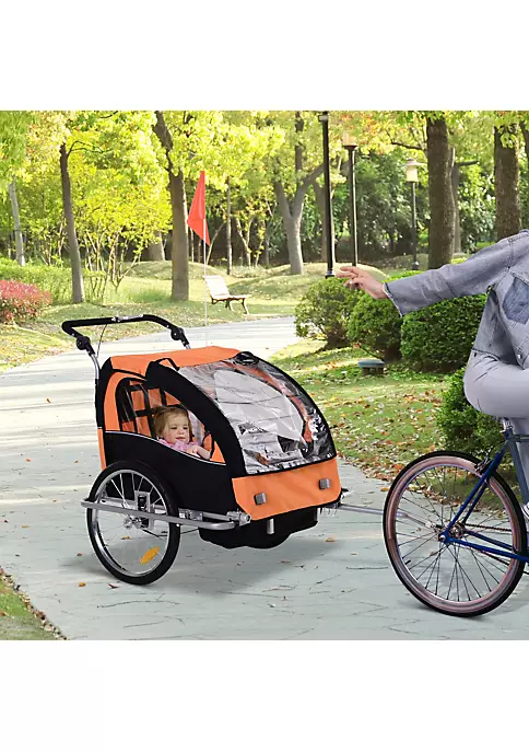 – 2-in-1 design double child bike stroller, trailer, and jogger for the perfect blend of functions and features in one family-friendly unit