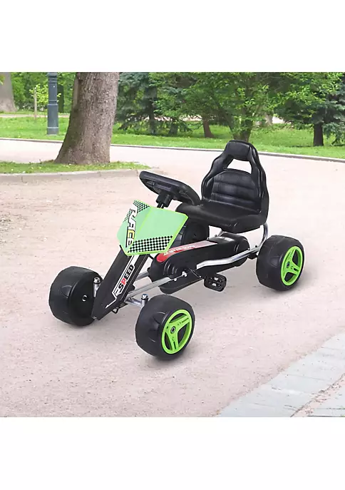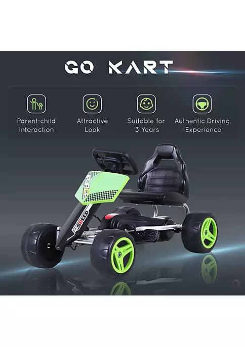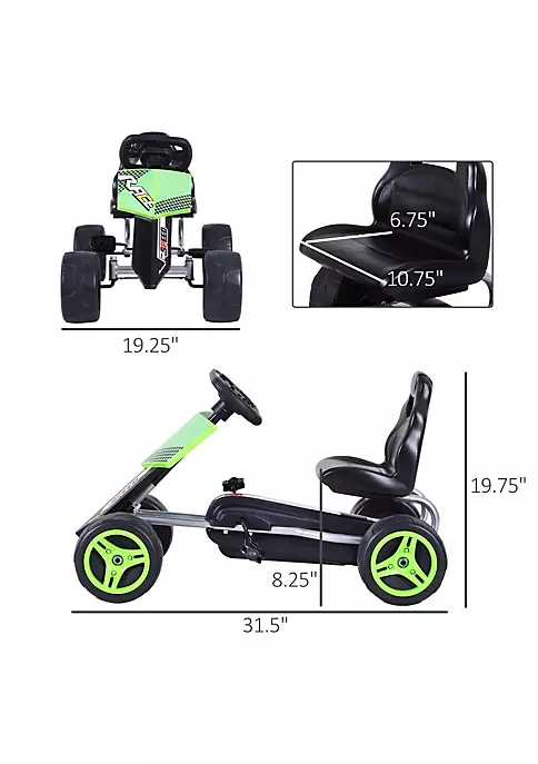 – Easy to operate by simply pedaling and using the steering wheel to control the kart’s directions