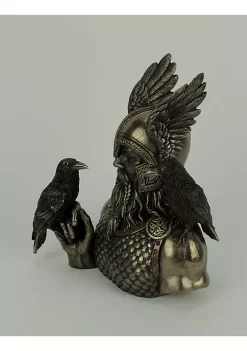Veronese Design Norse God Odin in Winged Helm with Ravens Statue
